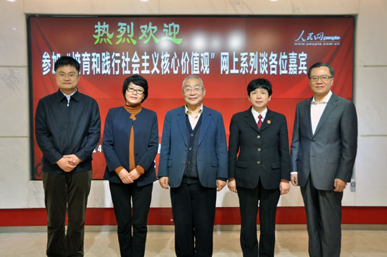 16日上午,北京市房山區(qū)委常委、宣傳部部長(zhǎng)趙佳琛,中國(guó)人民大學(xué)新聞學(xué)院黨委副書記羅建暉,國(guó)家電網(wǎng)公司思想政治工作部副主任方國(guó)元,北京市海淀區(qū)人民法院副院長(zhǎng)宋魚水,中國(guó)倫理學(xué)會(huì)名譽(yù)會(huì)長(zhǎng)、中國(guó)社科院研究員陳瑛作為第一場(chǎng)訪談的嘉賓,在人民網(wǎng)強(qiáng)國(guó)論壇與網(wǎng)友進(jìn)行在線交流。