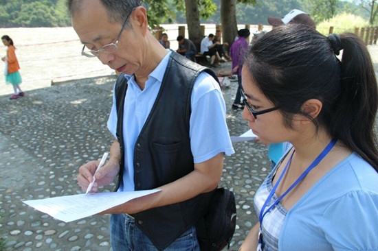 “綠色新生態(tài)”團(tuán)隊(duì)的成員來自四川農(nóng)業(yè)大學(xué)資源與環(huán)境學(xué)院,此次實(shí)踐的主題是“宣環(huán)保足探石棉縣,揚(yáng)生態(tài)共筑中國夢”。隊(duì)員們前往災(zāi)后重建縣城——雅安市石棉縣開始為期8天的征程:走訪石棉縣下屬各鄉(xiāng)鎮(zhèn),發(fā)放調(diào)查問卷,采訪相關(guān)政府部門,參觀革命紀(jì)念館等。雖然實(shí)踐進(jìn)展的不是一帆風(fēng)順,但隊(duì)員們?nèi)詧?jiān)持不懈,不斷反思自我!敖裉斓膶(shí)踐帶給我最多的就是震撼和感動,在分發(fā)便利貼時(shí)遇到了很多困難,但克服這些困難之后會有一種深深的滿足感。飽含濃郁的紅色文化氛圍的安順是我們小隊(duì)宣傳‘中國夢’的絕佳之地,我們還要更加努力。”隊(duì)員胡瀚文在中國工農(nóng)紅軍強(qiáng)渡大渡河紀(jì)念館做環(huán)保宣傳時(shí)這樣告訴記者。另一位隊(duì)員郭瑀說:“能深入鄉(xiāng)村進(jìn)行面對面的了解對我來說是一個(gè)全新的經(jīng)歷,很新鮮也很有意義。雖然實(shí)踐的時(shí)候很累,但還是有一股力量支撐著自己堅(jiān)持下去,我們的成員們都很棒,相信我們能取得好的成果!