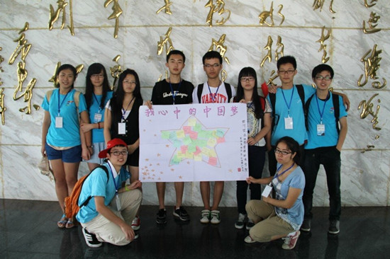 隊(duì)員們向游客分發(fā)便利貼,收集他們的中國夢,與便利貼展示板合影。