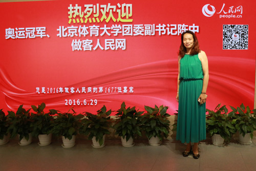 奧運(yùn)冠軍、北京體育大學(xué)團(tuán)委副書記陳中做客人民網(wǎng)強(qiáng)國論壇(代睿 攝)