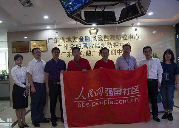 調(diào)研組一行在廣州市金融風(fēng)險(xiǎn)監(jiān)測(cè)防控中心交流調(diào)研后留影。(人民網(wǎng)記者 耿寬謀 攝)