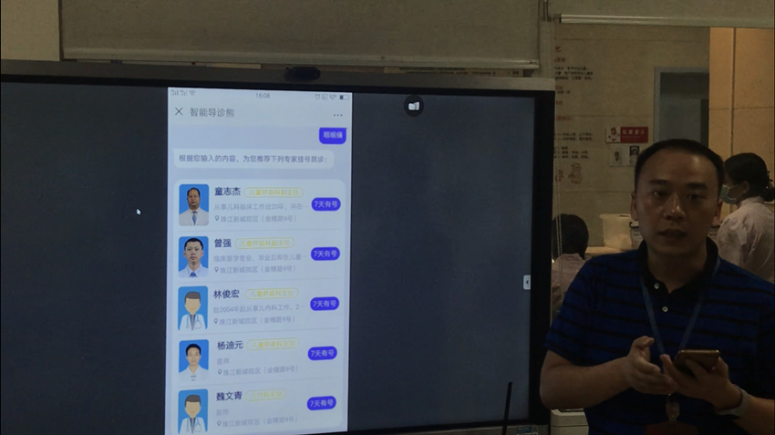 在廣州市婦女兒童醫(yī)療中心,與手機客戶端同步的導診機器人“咪姆熊”,還幫助患者導航至醫(yī)院的每個位置;根據(jù)指令,物流機器人“諾亞”可以自行乘坐電梯,將醫(yī)護人員所需藥品送達指定科室;新一代AI平臺能讀X光片和超聲數(shù)據(jù),還能在30秒內(nèi)診斷出2種眼科疾病......