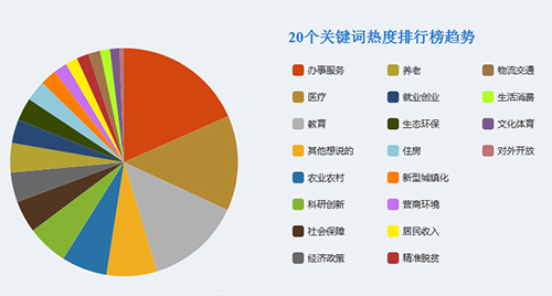 圍繞群眾關(guān)切,本次征集活動(dòng)共設(shè)置了20類(lèi)話題。辦事服務(wù)、醫(yī)療、教育是網(wǎng)友關(guān)注的重點(diǎn),位居話題榜前三位?蒲袆(chuàng)新、農(nóng)業(yè)農(nóng)村、社會(huì)保障、養(yǎng)老、經(jīng)濟(jì)政策、生態(tài)環(huán)保、住房分列四到十位。