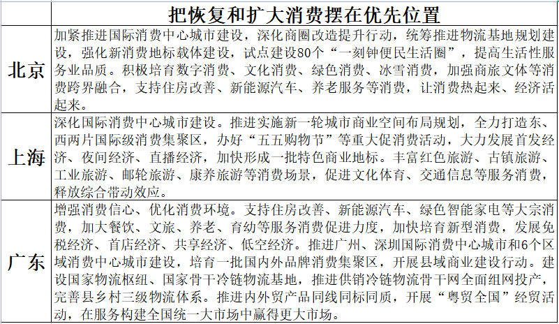 針對近期中央經(jīng)濟(jì)工作會議提出的“要把恢復(fù)和擴(kuò)大消費(fèi)擺在優(yōu)先位置”,地方政府將擴(kuò)大內(nèi)需尤其是促進(jìn)消費(fèi)恢復(fù)作為2023年政策的重點(diǎn)。