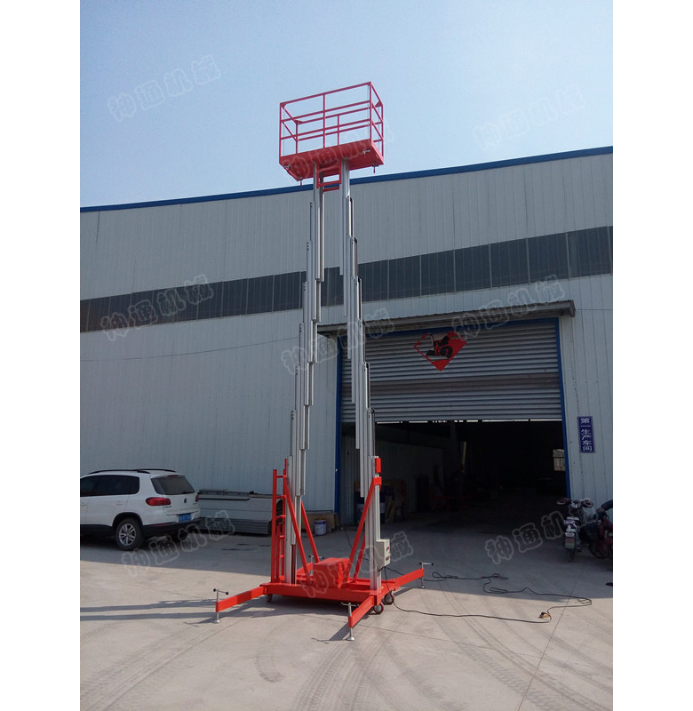 產(chǎn)品介紹:鋁合金式液壓升降平臺(tái)采用高強(qiáng)度優(yōu)質(zhì)鋁合金材料,具有造型美觀、體積小、重量輕、運(yùn)轉(zhuǎn)靈活,推行方便。升降平穩(wěn)、安全可靠等優(yōu)點(diǎn)。雙柱鋁合金式升降機(jī)能穿越一般門(mén)廳,可隨意進(jìn)出電梯,能在極小的空間內(nèi)發(fā)揮最高的舉升能力。使雙人高空作業(yè)變得輕而易舉。且耗電少、無(wú)污染、工作時(shí)不傷地面,可用于貼墻作業(yè)及探出作業(yè)。鋁合金升降平臺(tái)分為單柱、雙柱、三柱和四柱等.